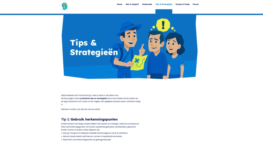 The public website on disorientation disorders (called ‘De Weg Kwijt’) was launched in September 2025. This site will gradually bring together all resources related to Atopia, from flyers to personal stories and exercises. One important next step is the launch of an experiential game. “How do you explain what Atopia is if you don’t have it yourself? That’s almost impossible. That’s why we’re developing a game that allows relatives and professionals to experience what it’s like to live with this condition.”