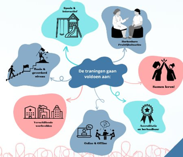 Uit de sessies bleek dat deelnemers het leuk zouden vinden om samen te leren en kwamen belangrijke implementatievragen ter sprake. Dijkman: “De ene afdeling heeft bijvoorbeeld een vast contactmoment op de dag om bij zo’n training stil te staan, en de andere afdeling niet. Als we echt iets afdelingsoverstijgends wilden maken, moesten we daar dus rekening mee houden: geen training die een lange instructie of overleg vraagt, maar een vorm waarmee je gemakkelijk en snel aan de slag kunt.”